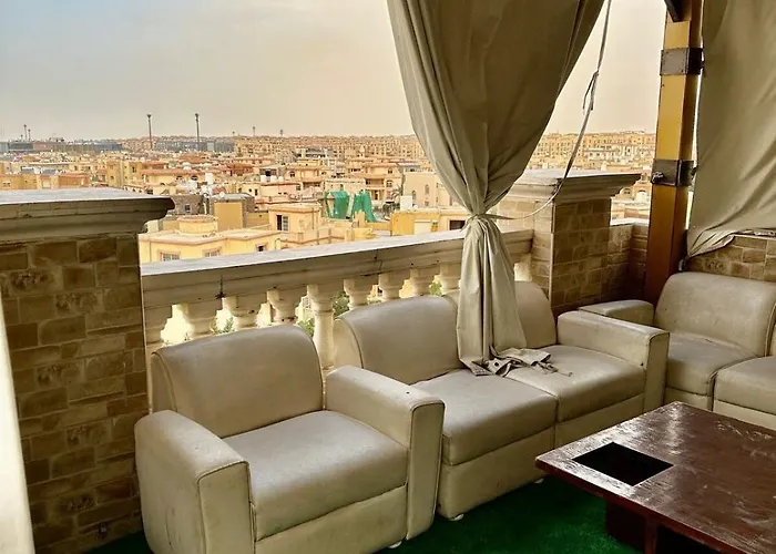 Situated within 25 minutes' walk of El Rehab Mall 2, the spacious 180 m² Skyview Roof Apartment Cairo also boasts easy access to El Giza train station which is 41 km away. The apartment offers a view of the garden, and there is a terrace.